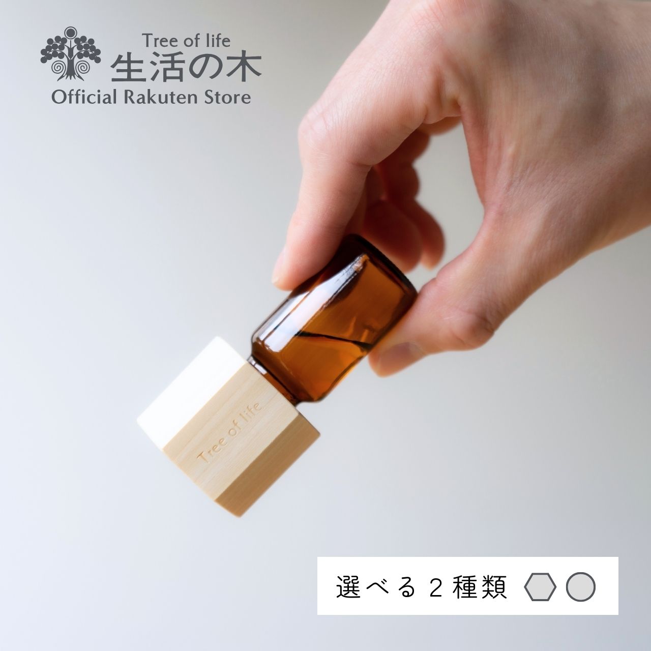国産ヒノキでできたアロマキャップに、エッセンシャルオイル(精油)瓶を付け、瓶をそっと傾けるだけで優しくアロマが香ります。